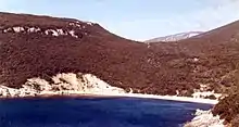 There are many such small beaches along the coast of Istria. Tourists from all over Europe vacation on this coast. All the beaches consist of small rounded flat stones of many different colors. In the 1820 Cadastro Franceschino maps the beach was called Porto Voscice also called in 1632 Porto St. Giovanni and was one of the five ports on the east coast of Istria from Fianona to Voscice.[8] This was the spot where a flat bottom boat called Trabacula came to load logs of timber for Trieste and Venice. The forest owners would cut trees and load them on a small pier where the boat would dock to load the timber. The boat captain would pay one half of the value of the timber and the other half on the next trip. According to the historians, in 1616, during the war with Turkey, in a small inlet of Punta Nera or Crna Punta a Turkish boat was anchored where it could not be seen by the sea or land. The local people happened to see the boat and called for help. They overtook the boat and took some prisoners of the crew.[9] PageXVI Title:Archeografo Triestino: Raccolta di Memorie, Notizie, documenti...Vol. 1 Albona cenni storici Statuto Municipale della Citta d'Albona del A'1341 (Published by Societa del Gabinetto di Minerva in Trieste 1870)