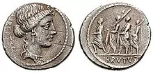 Modern scholars agree that the name Koson most likely refers to a local king about whom nothing else is known.[4][5] Vasile Pârvan argues that he was probably a Thracian dynast who employed the Dacian Getae tribe in plundering raids across the Danube, paying them in his coins.[6] Theodor Mommsen argued that Koson was probably a Dacian ally of Brutus, since the coins seem to derive their imagery from those minted by Brutus himself. Recent scholars often argue that he is very likely to be identical to the "Cotison" mentioned by Horace (Odes III., 8, 18,) and Suetonius, (Augustus, 63.), a Dacian king during the reign of Augustus who had raided over the Danube.[7]