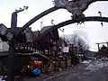 A kotan generally consisted of cise (thatched-roof houses), hepereset (cages for keeping young bears usually for the iomante ceremony), an ashinru and/or menokol (lavatories for the males and females respectively), a pui (stilt warehouse for storing food), and various drying racks for wild plants, fish, and animal skins. There is usually an nusasan (altar) dedicated to the Inau god as well. In later years, chashis (Ainu fortifications) can be found around Ainu settlements.[3]