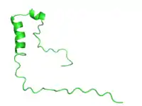 The Krüppel associated box (KRAB) domain is a category of transcriptional repression domains present in approximately 400 human zinc finger protein-based transcription factors (KRAB zinc finger proteins).[1] The KRAB domain typically consists of about 75 amino acid residues, while the minimal repression module is approximately 45 amino acid residues.[2] It is predicted to function through protein-protein interactions via two amphipathic helices. The most prominent interacting protein is called TRIM28 initially visualized as SMP1,[3] cloned as KAP1[4] and TIF1-beta.[5] Substitutions for the conserved residues abolish repression.