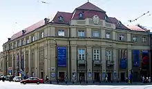 Soon after the return of Poland's sovereignty at the end of World War One, the company was reinstated, with an inaugural concert held on May 18, 1919 for the centennial anniversary of Stanisław Moniuszko's birthday, featuring 80 musicians. In 1931 a brand new concert hall (pictured) was built at Zwierzyniecka street. The resident orchestra was active there until the Nazi-Soviet invasion of Poland, with the last performance held on May 21, 1939, under the direction of Bronisław Wolfstahl.[2][3]