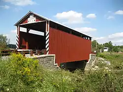 The Kramer Covered Bridge No. 113 is a historic wooden covered bridge located at Greenwood Township in Columbia County, Pennsylvania. It is a 50-foot-long (15 m), Queen Post Truss bridge with a metal roof constructed in 1881. It crosses Mud Run. It is one of 28 historic covered bridges in Columbia and Montour Counties.[2]