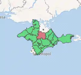Krasnohvardiiske Raion (Russian: Красногвардейский район), known by Ukrainian authorities[nb 1] as Kurman Rayon (Ukrainian: Курманський район, Crimean Tatar: Qurman rayonı) is one of the 25 regions of the Autonomous Republic of Crimea, a territory recognised by a majority of countries as part of Ukraine and annexed by Russia. The administrative centre of the raion is the urban-type settlement of Krasnohvardiiske. Krasnohvardiiske Raion is located in the central part of Crimea. Population: 83,135 (2014 Census).[1]