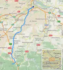 It originates at the foot of the mountain Kremsmauer in Micheldorf, runs northwards in the Traunviertel through the Upper Austrian Prealps, and flows into the Traun in Ebelsberg, a district of Linz.