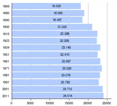 The population (with principal residence status) in the agglomeration was about 50,000 at the end of 2010.