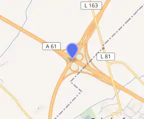 The Kreuz Meckenheim (German: Autobahnkreuz Meckenheim) is a cloverleaf interchange that connects the Bundesautobahn 61 (Venlo - Hockenheim) and 565 (Bonn - Gelsdorf) with each other. It is located in the south of the town of Meckenheim in the Rhein-Sieg-Kreis (North Rhine-Westphalia), a small piece on the southeast side is in the area of the neighboring municipality of Graftschaft in the Ahrweiler district (Rhineland-Palatinate).