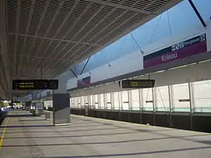 Krieau is a station on U2 of the Vienna underground railway (U-Bahn) network.[1] It is located in the Leopoldstadt district of the city, and is the station that serves both Messe Wien as well as the new campus of the Vienna University of Economics and Business. It opened in 2008. Krieau Station was originally to be named Trabrennstraße, but the planned name was changed in 2006, two years before the station opened.