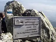 A summit plaque in memory of the 1841 ascent