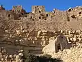 Ksar Chenini is located on the crest of a peak overlooking the new village of Chenini at 150m above sea level. It has been qualified by Abdesmad Zaïed as "one of the most imposing" in the country.[1]