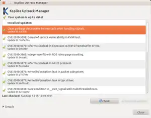 ![]() A screenshot of the Ksplice Uptrack with applied updates | |