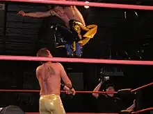 On July 13, 2005, Kudo made the first appearance of his American excursion, when he defeated Eddie Kingston at an IWA East Coast event in South Charleston, West Virginia.[24] On July 23, Kudo made his debut for Chikara, defeating Anthony Franco in the first round of the Young Lions Cup III tournament.[25] Later that same day, Kudo was defeated by Shane Storm in a six-way elimination semifinal match, which also included Claudio Castagnoli, Crossbones, Equinox and Niles Young.[25] Six days later, Kudo made his debut for International Wrestling Cartel (IWC), defeating Jimmy DeMarco.[26] On August 13, Kudo returned to IWC, defeating Jason Gory.[27] The two had a rematch thirteen days later, which was also won by Kudo.[28] On August 19, Kudo made an appearance for Independent Wrestling Association Mid-South (IWA-MS), losing to Brandon Thomaselli.[29] The following day, Kudo was defeated by Arik Cannon.[30] On September 6, Kudo returned to IWA East Coast, losing to Ruckus.[31] Three days later, Kudo returned to IWA-MS, defeating Brandon Thomaselli in a rematch of their previous month's encounter.[32] The following day, Kudo made his debut for NWA Upstate, defeating D to the Icky, Fabulous John McChesney and Mastiff in a four-way match.[33] On September 16, Kudo returned to Chikara, losing to Claudio Castagnoli.[34]