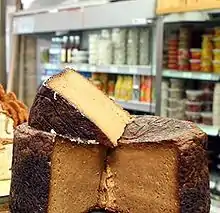 The first kugels were made from bread and flour and were savory rather than sweet. About 800 years ago, Jewish cooks in Germany replaced bread mixtures with lokshen noodles or farfel.[3] Eventually eggs were incorporated. The addition of cottage cheese and milk created a custard-like consistency common in today's dessert dishes. In Poland, Jewish homemakers added raisins, cinnamon and sweet curd cheese to noodle kugel recipes. In the late 19th century, Jerusalemites combined caramelized sugar and black pepper in a noodle kugel known as the Jerusalem kugel (Hebrew: קוגל ירושלמי, romanized: kugel yerushalmi), which is a commonly served at Shabbat kiddushes and is a popular side dish served with cholent during Shabbat lunch.