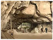 In the early 19th century the Kuhstall developed into one of the main attractions of Saxon Switzerland. It was an important station along the Artists' Way (Malerweg). August von Goethe visited the rocks in June 1819 and reported: "a friendly hospitality with beer, strawberries, lemonade and rum made this spot a place of rest for the hungry and tired body."[1]
