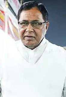Kunduru Jana Reddy కుందూరు జానారెడ్డి[1] (born 20 June 1946) is an Indian politician. He was the leader of opposition in first Telangana Assembly, Served as the Minister for Panchayat Raj & Rural Water Supply in the State of Andhra Pradesh during its term from 2009 to 2014. He was among the most prominent cabinet ministers of the ruling Indian National Congress (INC) and served as Minister for Home, Jails, Fire Service, Sainik Welfare, Printing & Stationery government led by the late former Chief Minister Dr Y. S. Rajasekhara Reddy from 2004 to 2009. In 2009 elections he won with a margin of 6214 votes against industrialist turned politician of TDP Chinappa Reddy Tera.[2] In 2014 he won with a margin of 16558 votes over Nomula Narsimaiah of TRS in the year where Congress lost the majority vote. He lost the 1994 elections to TDP candidate Gundeboina Rammoorthy Yadav.[3]