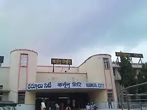 Kurnool City railway station, formerly Kurnool Town railway station (station code: KRNT[1]), is located in the Indian state of Andhra Pradesh. It serves Kurnool in the Kurnool district.[2] It is under the administrative control of the Hyderabad Division of the South Central Railway zone of the Indian Railways.