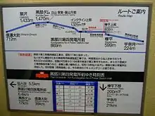The Kurobe Senyō Railway (黒部専用鉄道, Kurobe Sen'yō Tetsudō, "Kurobe Industrial Railway") is a Japanese, 762 mm (2 ft 6 in) narrow gauge industrial railway line in Toyama Prefecture, operated by Kansai Electric Power Company. There are two lines, namely Jōbu Track (上部軌道, Jōbu Kidō) and Kuronagi Branch Line (黒薙支線, Kuronagi Shisen). The two lines go to hydroelectric power plants of Kurobe River. These lines are basically not open to public. This article is mainly about Jōbu Track.