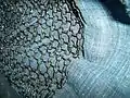The Japanese used many different weave methods including: a square 4-in-1 pattern (so gusari), a hexagonal 6-in-1 pattern (hana gusari) and a European 4-in-1 (nanban gusari),[8] the kusari links could be doubled up and some examples were tripled in a possible attempt to make the kusari bullet resistant.[9] The links were lacquered black to prevent rusting, and were always stitched onto a backing of cloth or leather. The kusari was sometimes concealed entirely between layers of cloth.[10]