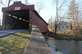 Kutz's Mill Bridge is a historic wooden covered bridge located at Greenwich Township in Berks County, Pennsylvania. It is a 93-foot-long (28 m), Burr Truss bridge, constructed in 1854. It crosses the Sacony Creek. It is one of five covered bridges remaining in Berks County.[2] As the name implies, it leads to the Kutz Mill.