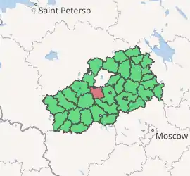 Kuvshinovsky District (Russian: Кувши́новский райо́н) is an administrative[1] and municipal[5] district (raion), one of the thirty-six in Tver Oblast, Russia. It is located in the center of the oblast and borders with Vyshnevolotsky District in the north, Torzhoksky District in the east, Staritsky District in the south, Selizharovsky District in the southwest, Ostashkovsky District in the west, and with Firovsky District in the northwest. The area of the district is 1,874 square kilometers (724 sq mi).[2] Its administrative center is the town of Kuvshinovo.[1] Population: 15,386 (2010 Census);[3] 17,847 (2002 Census);[8] 20,601 (1989 Census).[9] The population of Kuvshinovo accounts for 65.0% of the district's total population.[3]
