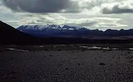 The Holuhraun lava field is approximately 10 km (6.2 mi) to the north-west of Kverkfjöll. The main volume of the Jökulsá á Fjöllum river flows from the Kverkfjöll area.[1]