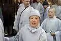 The school website says, "Prostrations could be likened to the 'emergency measure' for clearing the mind. They are a very powerful technique for seeing the karma of a situation because both the mind and the body are involved. Something that might take days of sitting to digest may be digested in a much shorter time with prostrations. The usual practice here is to do 1000 bows a day (actually 1080). This can be done all at once or as is usually the case, spread out through the day."[18] The number of prostrations students often perform varies in part on their physical ability, though at least 108 and up to 1080 per day is usual. Also unique in the KUSZ is the fact that celibacy is not required of those who are ordained.[10] Rather, Seung Sahn created the idea of a "Bodhisattva Monk," which essentially is an individual who can be married and hold a job but also be a monk in the order.[1] This status has now been superseded in the KUSZ by "Bodhisattva Teacher", who takes the 48 precepts but is not considered an ordained monk.