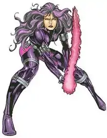 Kwannon is a fictional character appearing in American comic books published by Marvel Comics. She first appeared in X-Men #17 (Feb. 1993) and was created by writer Fabian Nicieza and artist Andy Kubert.[1] The character is most commonly associated with the X-Men, specifically the character of Betsy Braddock, with whom she switched bodies. In Betsy's body, as Revanche, she had access to telepathic abilities and used it primarily to generate a psionic sword. She is depicted as a former assassin who previously operated as a member of The Hand.