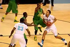 Anderson committed on September 19, 2011, to attending University of California, Los Angeles (UCLA) to play Division I basketball for the Bruins.[8] He had also considered Seton Hall, Georgetown, Florida and St. John's. A major factor in his decision was UCLA coach Ben Howland's record of grooming successful point guards in the National Basketball Association (NBA).[12] Anderson and Muhammad were the top players in the Bruins' recruiting class, which was considered the best in the nation.[13][14] Howland had Anderson mostly playing off the ball, while Larry Drew II was the Bruins' primary ball handler.[15] Playing primarily as a power forward,[15][16] Anderson finished the season with averages of 9.7 points, 8.6 rebounds and 3.5 assists.[17] Though he struggled at times under Howland's strict offense,[18] he led the team in rebounding and was the only player ranked in the top 10 in the Pac-12 in both rebounds and assists.[2][19] He was the first Pac-12 player since UCLA's Bill Walton as a senior in 1973–74 to have at least 300 rebounds and 100 assists in the same season.[20] Anderson was named to the All-Pac-12 second team and the Pac-12 All-Freshman team.[21] Projected by NBA executives to be chosen in the first half of the second round of the 2013 NBA draft if he declared himself eligible, Anderson gave major consideration to leaving college.[17]