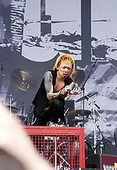 Kyo (Japanese: 京, Hepburn: Kyō, born February 16,[1] 1976 in Kyoto) is a Japanese musician, singer, lyricist and poet. He is best known as the vocalist and lyricist of the metal band Dir En Grey. He was formerly in a string of visual kei rock bands, with the most notable being La:Sadie's from 1995 to 1997. He then started Dir En Grey in February 1997, following La:Sadie's disbandment with three of its members, and formed the experimental rock band Sukekiyo in 2013. Kyo was inspired to become a musician when he saw a picture of Buck-Tick vocalist Atsushi Sakurai on the desk of a junior high school classmate.[2] When he then discovered X Japan he was particularly fond of hide and had his parents buy him the guitarist's black signature model guitar.[2] However, after realizing how difficult it was to play guitar and then bass, he then switched to vocals.[2]