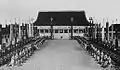 The Kyoto Imperial Palace is the latest of the imperial palaces built at or near its site in the northeastern part of the old capital of Heian-kyō (now known as Kyoto) after the abandonment of the larger original Heian Palace that was located to the west of the current palace during the Heian period. The Palace lost much of its function at the time of the Meiji Restoration, when the capital functions were moved to Tokyo in 1869. However, Emperor Taishō[2] and Shōwa[3] still had their enthronement ceremonies at the palace.