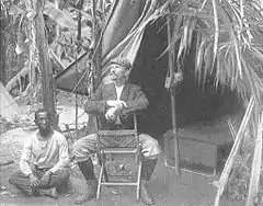 Joubert's status was ambiguous. The Belgians had appointed Tippu Tip as their lieutenant in the region, but Joubert refused to recognize the authority of the slaver.[16] During a lull in January 1891, Father I. Moinet visited Ujiji. There he found Rumaliza flying a German flag and saying he was waiting for the Germans to arrive so he could hand over to them. In a letter to Joubert in April 1891, Rumaliza asked if he was employed by the missionaries or by the government of the Congo. Joubert was evasive in his reply, pointing out that Rumaliza sometimes flew the German flag, sometimes the flag of Zanzibar and sometimes that of Britain.[17]