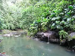 The Lézarde is a river of Guadeloupe. 25.4 kilometres (15.8 mi) in length,[1] it is one of the most important rivers in Guadeloupe, which flows into the town of Petit-Bourg and into the Caribbean Sea on the east coast of the island. It bears its name from the way it winds between rocks and the rainforest. The source of the river is in Merwart, at 564 metres (1,850 ft) above sea level, near Icaques, in the municipality of Petit-Bourg. There are sugarcane plantations in the vicinity.[2]