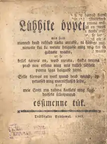 Lühhike öppetus (Estonian for Brief Instruction), by modern orthography 'Lühike õpetus', was the first periodical publication in the Estonian language. Edited by Dr. Peter Ernst Wilde and printed for a short while in 1766–1767, it described various simple medical techniques intended to be usable in the field by peasants.