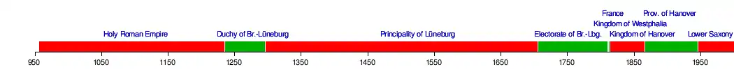 The town became part of the Electorate of Hanover in 1708, the Kingdom of Westphalia in 1807, the First French Empire in 1810, the Kingdom of Hanover in 1814, and the Prussian Province of Hanover in 1866.