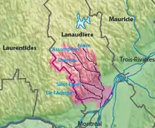 The Assomption River (in French Rivière l'Assomption, named after the Assumption of Mary) is the most important waterway in the Lanaudière region of Quebec, Canada. It is over 200 kilometres (120 mi) long, and has a drainage basin (watershed) of 4,220 square kilometres (1,630 sq mi). Its source is the Mont Tremblant massif. Seven significant rivers flow into the Assomption (de la Boule, Versailles, Noire, la Chaloupe, Ouareau, Saint-Esprit, and Achigan) before it flows into the Rivière des Prairies at Repentigny, Quebec.