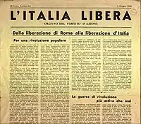 L'Italia Libera (meaning Free Italy in English) was the newspaper of the Italian anti-fascist organization and political party Partito d'Azione (abbrev: Pd'A) (Action Party).
