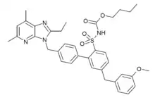 L-163,491 is a drug which acts as a partial agonist of angiotensin II receptor type 1, and with lower affinity as an agonist of angiotensin II receptor type 2, mimicking the action of angiotensin II.[1] Its practical applications to date have been limited to scientific research into the function of the angiotensin receptor system,[2] but it has been suggested as a potential therapeutic agent for the treatment of inflammation of the lungs associated with certain viral diseases such as COVID-19.[3][4]