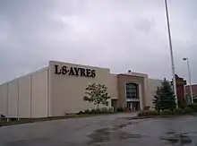 As urban populations shifted outward to suburban areas, Ayres moved closer to its customers by establishing branch stores in Indianapolis and Lafayette, Indiana.[15] In 1959, Ayres also opened a large warehouse facility and service center on Hillside Avenue in Indianapolis.[16] In 1965, a new branch store opened in the Greenwood Shopping Center, ten miles (16 km) south of the Indianapolis flagship store.[17] In 1966, Ayres opened a new branch store at Glenbrook Square in Fort Wayne, Indiana.[18] In addition to building new branch stores in Indiana, Ayres acquired a retail subsidiary, The John Bressmer Company in Springfield, Illinois, in 1958 and created Ayr-Way, a chain of self-service discount stores.[19] In 1969 Ayres expanded into Louisville, Kentucky, with the acquisition of Kaufman-Straus Company, a retail division of City Stores Corporation. The declining downtown Louisville store was not profitable and Ayres closed it within two years of its purchase. In 1973, Ayres installed an Ayr-Way discount store in the downtown Louisville location, but that also failed and closed in 1975. Two suburban Louisville locations were later merged into Ayres's Indianapolis operations.[20] The City Stores deal also included the acquisition of Wolf and Dessauer (W&D), a leading department store in downtown Fort Wayne, Indiana.[21] In the late 1960s, Ayres also entered the field of specialty retailing with the establishment of the Sycamore Shops and Cygnet Shops to cater to young adults.[22]