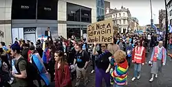 The protest, organised by bar staff from Liverpool's LGBT venues, started at the corner of Church Street and Paradise Street at 1pm and consisted of a march past St Johns Shopping Centre, Williamson Square and finished at Victoria Street in the gay quarter. Speeches and statements in condemnation of the attacks were made by Liverpool Mayor Joanne Anderson, Metro Mayor of the Liverpool City Region Steve Rotheram, Merseyside Police and Crime Commissioner Emily Spurrell and Andi Herring of Liverpool City Region Pride Foundation.