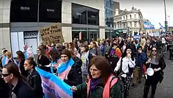 In 2019, Liverpool held its very first Trans Pride on International Transgender Day of Visibility (TdoV). A Trans Pride march, a number of awareness, education and celebratory events were held in the city.[117] Whilst this was the first Trans Pride, Liverpool has a long history of celebrating the transgender community and flies the transgender Pride flag every year from public buildings on TdoV.[118]