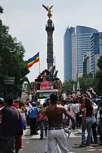 Tolerance of sexual diversity in certain indigenous cultures is widespread, especially among Isthmus Zapotecs and Yucatán Mayas.[4][5][6] As the influence of foreign and domestic cultures (especially from more cosmopolitan areas like Mexico City) grows throughout Mexico, attitudes are changing.[7] This is most marked in the largest metropolitan areas, such as Guadalajara, Monterrey, and Tijuana, where education and access to foreigners and foreign news media are greatest. Change is slower in the hinterlands, however, and even in large cities, discomfort with change often leads to backlashes.[8] Since the early 1970s, influenced by the United States gay liberation movement and the 1968 Tlatelolco massacre,[9] a substantial number of LGBT organizations have emerged. Visible and well-attended LGBT marches and pride parades have occurred in Mexico City since 1979 and in Guadalajara since 1996.