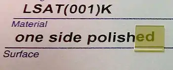 LSAT has a Mohs hardness of 6.5, placing it between quartz and the mineral feldspar. Its relative dielectric constant is ~22 and it has a thermal expansion coefficient of 8~10×10−6/K. The thermal conductivity of LSAT is 5.1 Wm−1K−1.[2][3] LSAT's (cubic) lattice parameter of 3.868 Å makes it compatible for the growth of a wide range of perovskite oxides with a relatively low strain.
