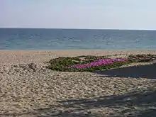 Flowers on the sand of La Antilla beach, Lepe, Huelva
