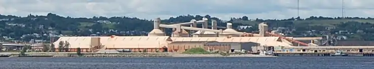 On July 26, 1924, the Port-Alfred Pulp and Paper Corporation acquired the plant and began converting its production from chemical to paper pulp in 1925.[35] Alcan purchased Port-Alfred's port and rail facilities in 1926 after the disposal of the Compagnie de Pulpe de Chicoutimi. The docks were converted so they could load bauxite for the new aluminum smelter in Arvida.[36]
