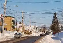 St-Urbain Road was opened in 1870 and connected Grande-Baie to Baie-Saint-Paul.[28] Telegraphs linked the two towns in 1880.[24] In 1859, the first jetty was built on Ha! Ha! Bay in Bagotville.[29] Three years later its first quay was built, which was later purchased by the Canadian government in 1876.[29] Bagotville's marine facilities, which were mainly used by Canada Steamship Lines, added a shipyard in 1853.[29]
