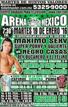- "Lucha Libre función martes12 de enero". Yahoo! Deportes (in Spanish). January 13, 2016. Retrieved December 1, 2019.