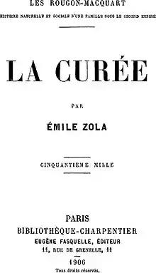 La Curée (1871–72; English: The Kill) is the 2nd novel in Émile Zola's 20-volume series Les Rougon-Macquart. It deals with property speculation and the lives of the extremely wealthy Nouveau riche of the Second French Empire, against the backdrop of Baron Haussmann's reconstruction of Paris in the 1850s and 1860s.
