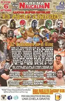 La Gran Cruzada (2015) (Spanish for "The Great Crusade") was an annual major professional wrestling event produced by Mexican professional wrestling promotion International Wrestling Revolution Group (IWRG), that took place on September 6, 2015 in Arena Naucalpan, Naucalpan, State of Mexico, Mexico. The main event of the show was the eponymous Gran Cruzada tournament, a 20-man Battle Royal with the winner earning a championship match for the division he competes in.