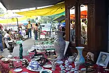 The main distinction between the La Lagunila baratillo and others is that a section of it has developed into an antiques market.[5] This section is centered on Comonfort Street and attracts collectors and tourists from both Mexico and abroad.[6] It is the best known of a number of antiques markets including Mercardo Cuauhtemoc, Mercado de Alvaro Obregon and Plaza del Angel in Mexico City along with Callejón del Sapo in Puebla and El Baratillo in Guadalajara.[5][20] The antiques market is one of the most traditional in Mexico City as interaction between seller and buyer is intense and personal. Good bargainers can get discounts of as much as thirty percent. As part of selling, many vendors will relate stories about the pieces, which may or may not be true.[6] The market has attracted some foreign buyers and sellers and with the Internet and other sources of information, most sellers are more aware of the prices their items can fetch.[20] In the past, this antiques market was known as cheap, but that is not true anymore.[2]