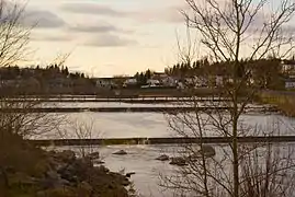 - 7.6 km (4.7 mi) towards the east passing in the town of Alma passing under a first road bridge, under the railway bridge, a second road bridge, up to at the bridge at route 169;