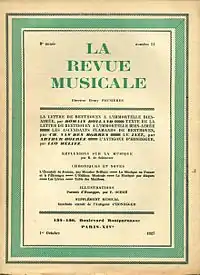 La Revue musicale was a music magazine founded by Henry Prunières in 1920.[1] La Revue musicale of Prunières was undoubtedly the first music publishing magazine giving as much attention to the quality of editing, iconography, and illustration. In each issue (11 per year), there was plenty of information on the musical and choreographic life in many countries.